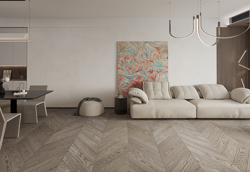 Forbedre plassen din med hvit eik UV -lakk chevron konstruert tregulv, en god blanding av stil og holdbarhet. Den børstede overflaten får frem den naturlige strukturen i den hvite eiken, og skaper en myk, taktil finish som gir varme og raffinement til ethvert rom. Det klassiske Chevron-mønsteret gir en tidløs, geometrisk design som passer sømløst inn i både moderne og tradisjonelt interiør. Laget med en ABC-karakter, er dette gulvet designet for varig ytelse, noe som gjør det ideelt for områder med høyt trafikk i både bolig- og kommersielle omgivelser. UV-lakkbelegget beskytter ikke bare treverket, men forbedrer også sin naturlige skjønnhet, og sikrer at gulvet forblir fantastisk over tid. Det er tidløst design og finish av høy kvalitet gjør det til det ideelle valget for å skape en innbydende og varig atmosfære.