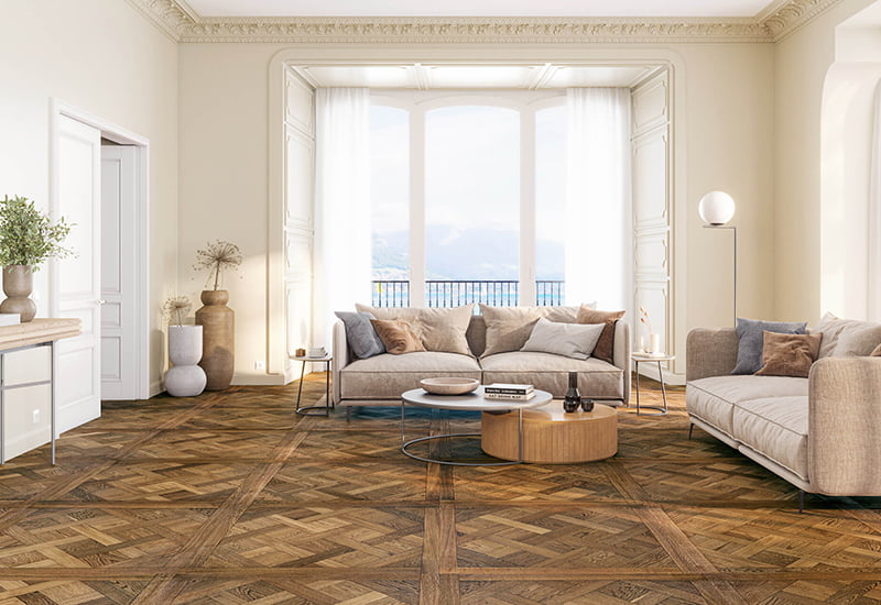 Varm hvit eik Fransk land Design Parkettgulv er et high-end tregulv som kombinerer klassisk fransk landstil med moderne håndverk. Den er nøye designet for å imøtekomme den varme og naturlige hjemmestemningen. Røykingsprosessen gir treverket en dypere tone og fremhever tekstur. Denne teknologien gjør ikke bare at treverket presenterer en rikere fargevariasjon, men forbedrer også den generelle dybden på gulvet, noe som gjør at det ser mer elegant og rolig ut. Sammenlignet med tradisjonell blank malingbelegg, kan UV -maling bedre opprettholde det naturlige utseendet på treverket mens du har en sterk beskyttende effekt. Denne etasjen er spesielt egnet for landstil eller fransk pastoral stil interiørdekorasjon. Den naturlige fargen og unike overflatebehandlingen gjør den til et ideelt valg for å skape et varmt, behagelig og pastoral rom. Det er også veldig egnet for high-end kommersielle rom og fransk pastoral stil dekorasjon, og tilfører en naturlig og elegant atmosfære til ethvert rom.